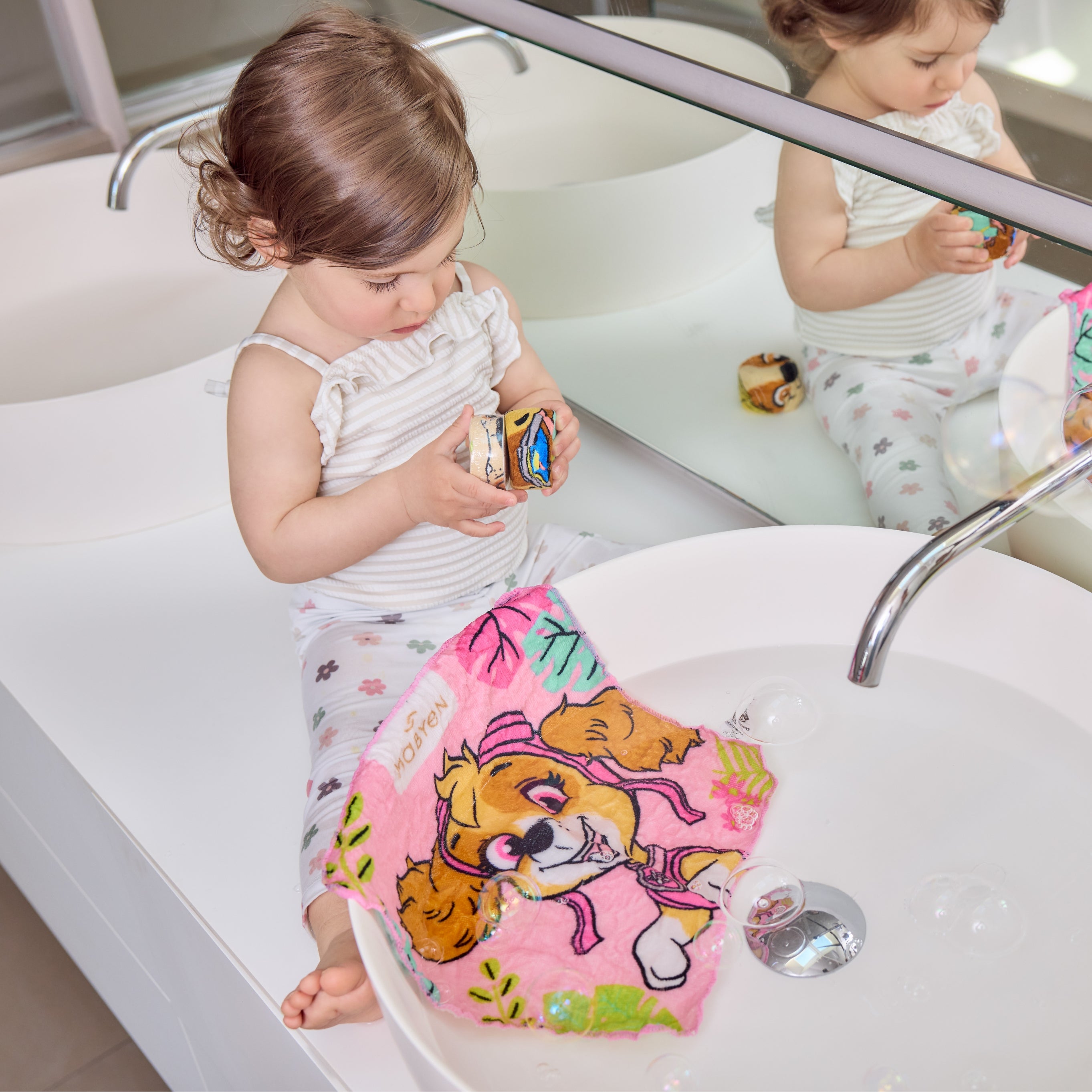 So macht Händewaschen und trocknen Spaß! Unsere beliebte PAW Patrol Schaumseife mit Hundeheld Marshall zaubert dank dem Aufsatz ganz einfach den Schaum in Form einer Pfote auf die Hand. Die pH-hautneutrale Rezeptur wurde speziell für sensible Haut entwickelt, um Kinderhände sanft zu reinigen und zu pflegen. Mit dem pfotenstarken Zaubertuch trocknen sich die kleinen Pfötchen mit viel Spaß, hierbei ist zufällig welches der vier Hundehelden (Chase, Rubble, Marshall, Skye) sich entfaltet. Dank dem Nachfüllpack musst du den Seifenspender nicht entsorgen oder nachkaufen und kannst ihn ganz einfach wiederverwenden.