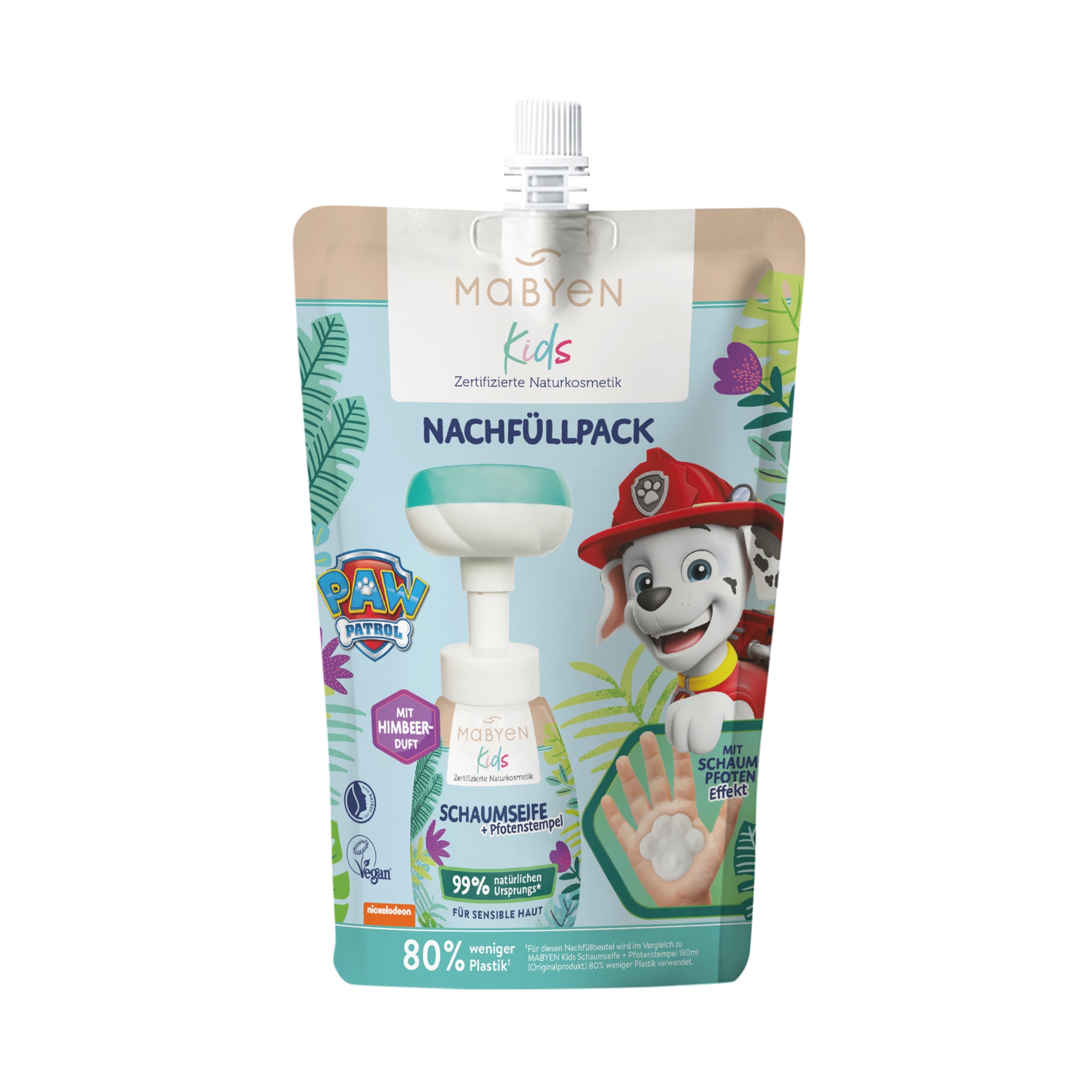 Die PAW Patrol Schaumseife mit Marshall formt den Schaum als Pfote auf die Hand und macht Händewaschen spaßig. Die pH-hautneutrale Rezeptur ist für sensible Haut geeignet, reinigt und pflegt sanft Kinderhände. Der Nachfüllpack ermöglicht die Wiederverwendung des Seifenspenders, ohne ihn wegwerfen oder neu kaufen zu müssen.