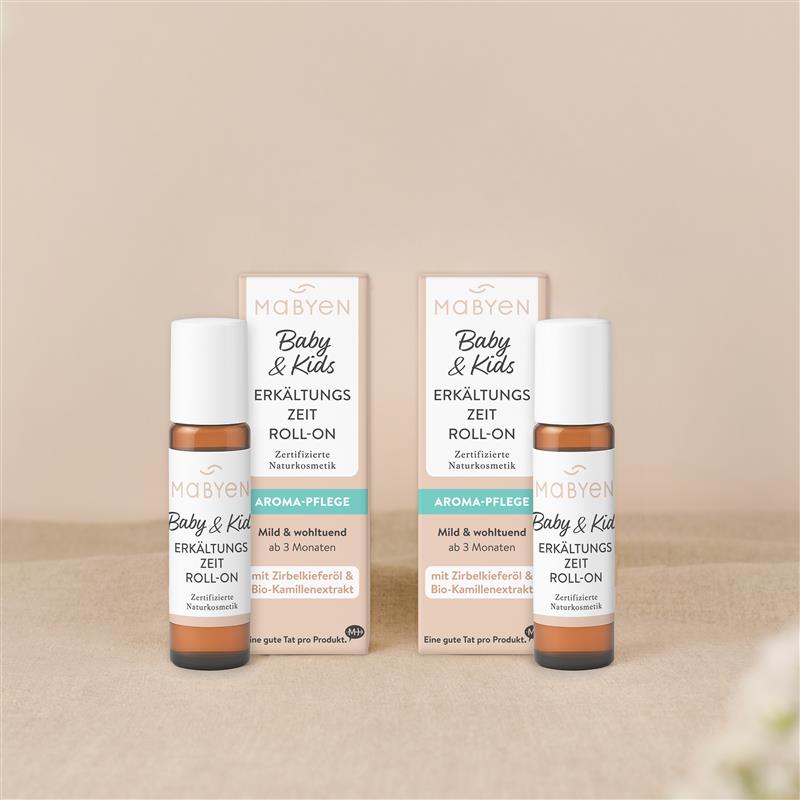 In der Erkältungszeit möchte man seinem kleinen Schatz besonders viel Nähe und Geborgenheit schenken - das Erkältungszeit Roll-On unterstützt dich dabei auf sanfte Weise. Mit beruhigendem Zirbelkieferöl, Bio-Kamille und Bio-Mandelöl pflegt es die empfindliche Haut deines Babys ab 3 Monaten besonders mild und sehr gut verträglich (dermatologisch getestet). Der praktische Roll-On macht das Auftragen auf Brust oder Rücken einfach und zu einem liebevollen Moment, den ihr gemeinsam genießen könnt. Das Erkältungszeit Roll-On ist zertifizierte und vegane Naturkosmetik aus Deutschland und verbindet natürliche Sicherheit mit liebevoller Pflege für die empfindliche Haut deines Babys. Mit jedem gekauften Produkt unterstützt du den Motherhood e.V. für sichere und selbstbestimmte Geburten in Deutschland. Gleichzeitig gleichen wir gemeinsam mit GREENZERO die Umweltauswirkungen unserer Produkte durch Renaturierungsprojekte aus und stärken so die Biodiversität und natürliche Lebensräume in Deutschland.