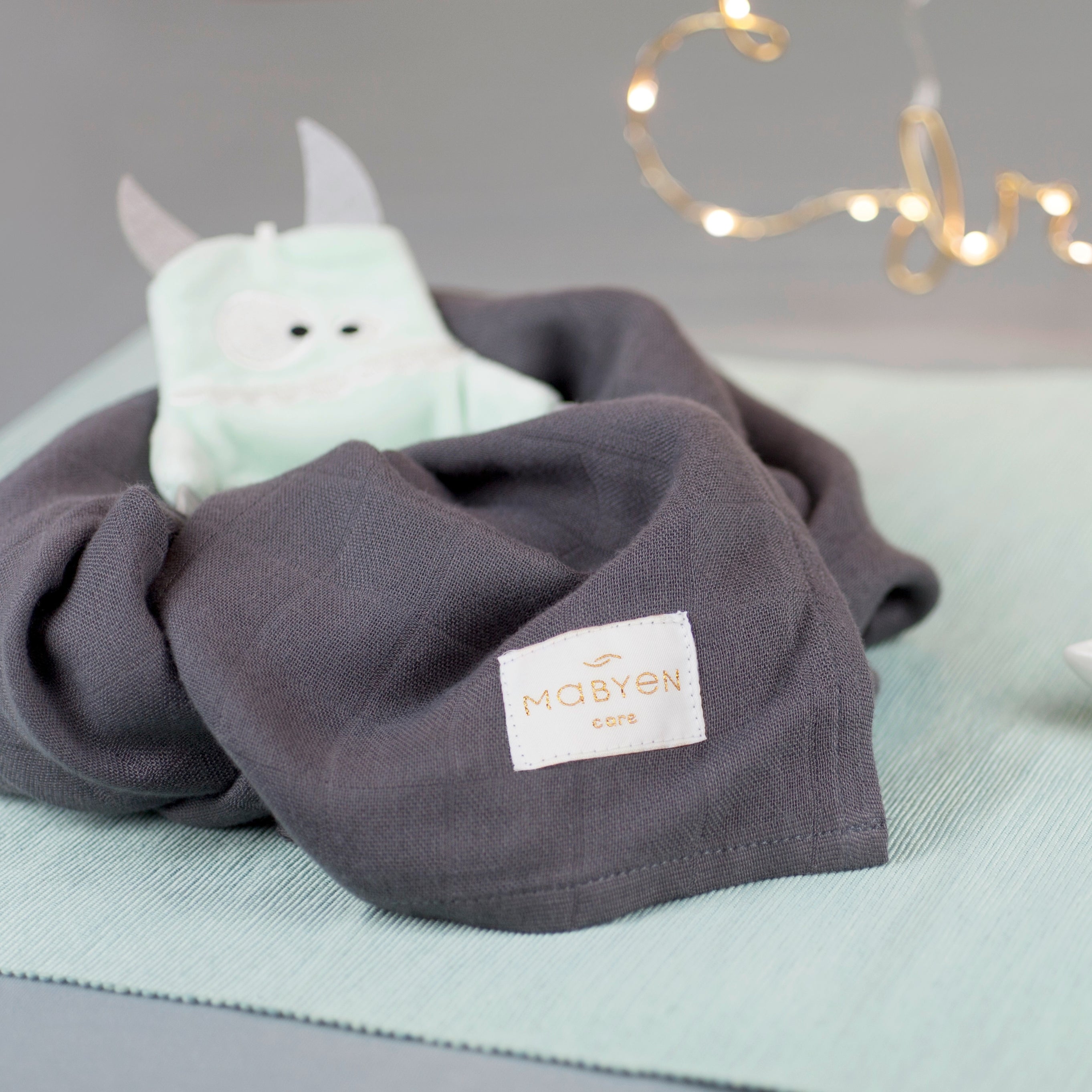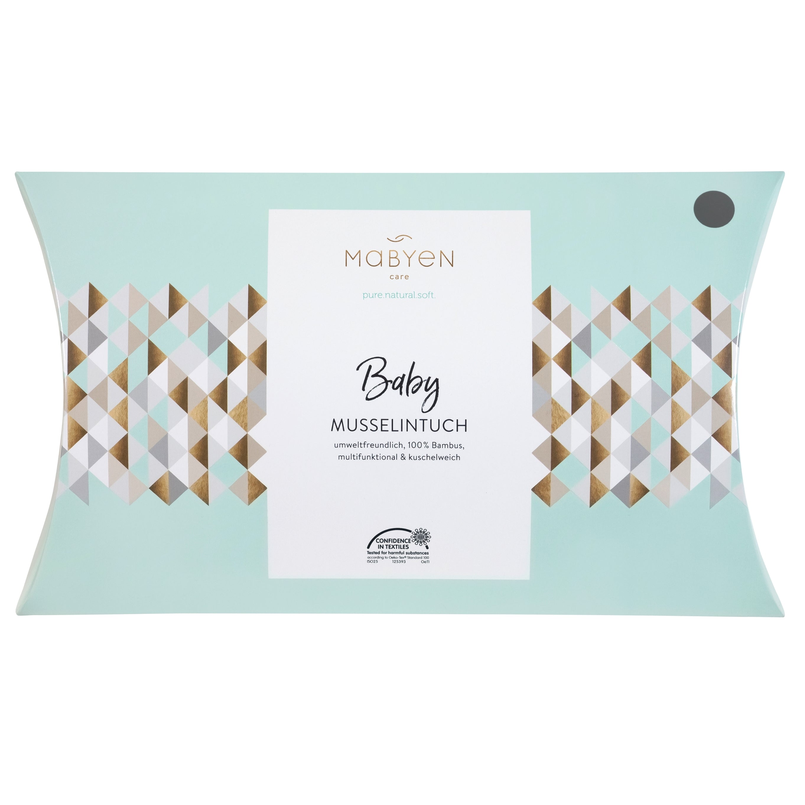 Unser Mabyen Musselin Tuch hat die Maße 80x80 cm.