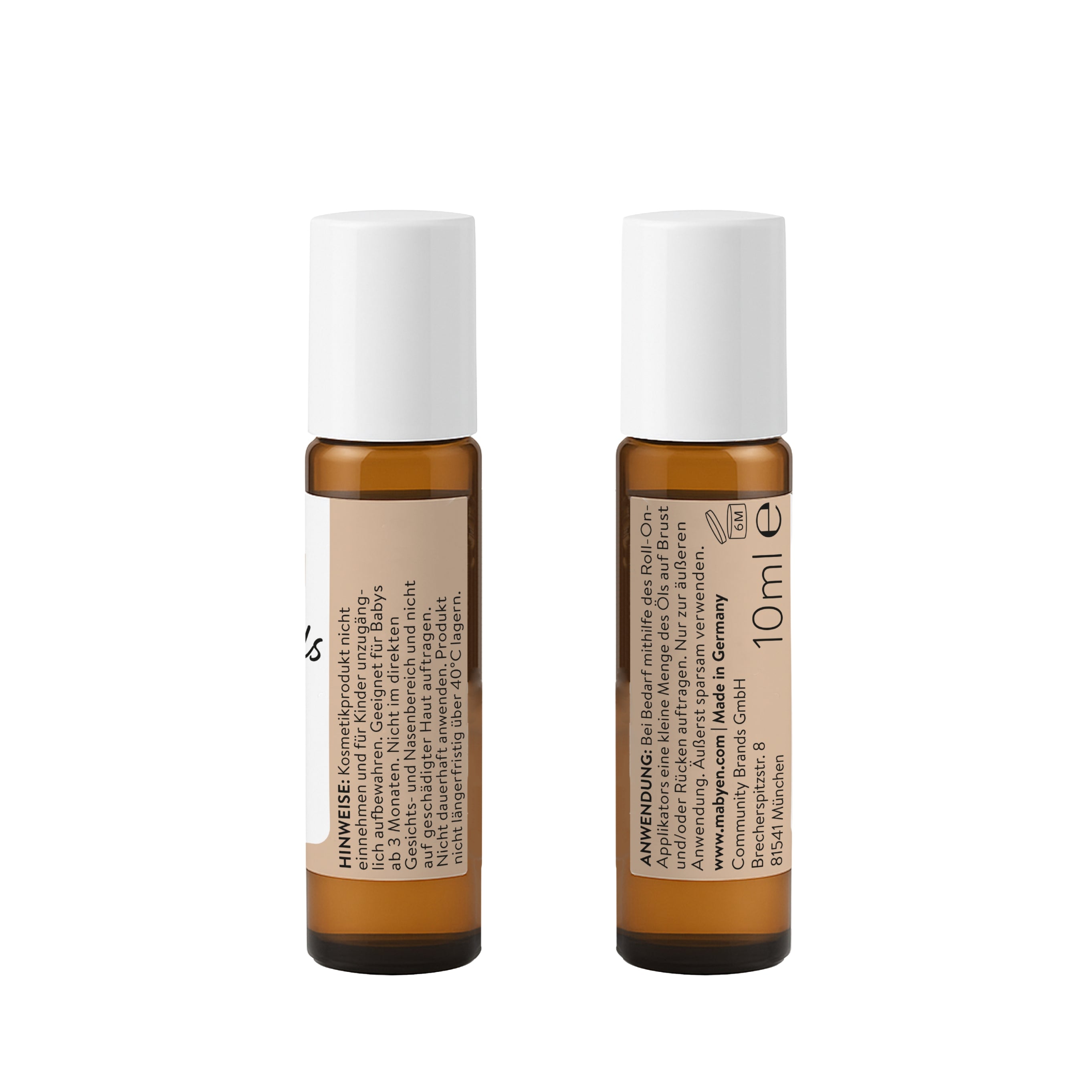 Trage eine kleine Menge auf Brust oder Rücken auf und massiere es sanft ein. Passe dabei auf, dass du das Roll-On nicht im Gesicht oder in der Nähe der Schleimhäute anwendest.