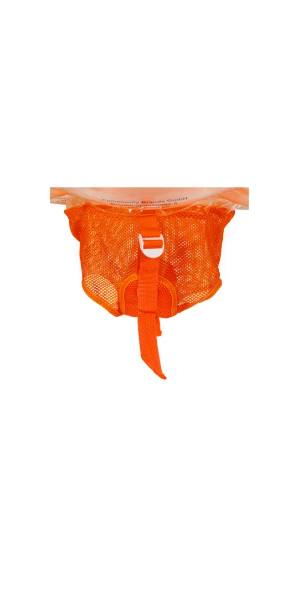 Stellt euer Kind außerhalb des Wassers in den Schwimmreifen und zieht in bis zur Brusthöhe hoch. Die Gurte am Sitz könnt ihr dann entsprechend verlängern oder enger ziehen, bis der Sitz eng am Gesäß eures Kindes anliegt und Stabilität gibt. Dafür zieht ihr am Schlaufenende, um die Schlaufe zu verkleinern oder zieht entgegengesetzt, um die Schlaufe zu vergrößern. Anschließend die überstehenden Enden durch die vorgesehenen Ösen fädeln, sodass diese nicht herunterhängen.