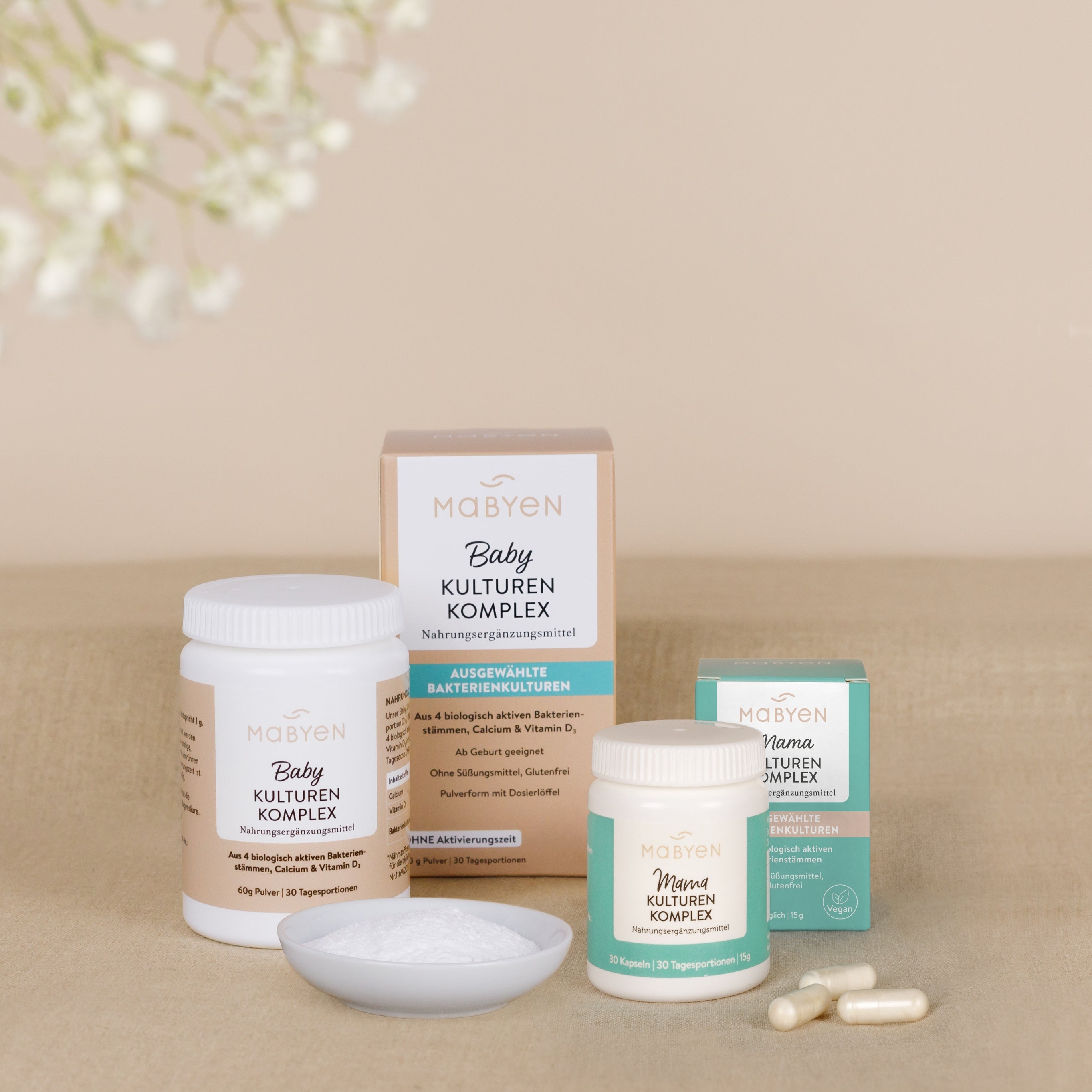 Die ersten Jahre mit deinem kleinen Schatz sind voller besonderer Momente - aber auch voller Routinen und Herausforderungen. Gerade in dieser Zeit wünscht man sich etwas, auf das man sich verlassen kann und das den Alltag erleichtert. Die MABYEN Kulturen Komplexe sind mit sorgfältig ausgewählten und abgestimmen Bakterienstämmen für Mamas in allen Phasen und Babys ab Geburt geeignet.