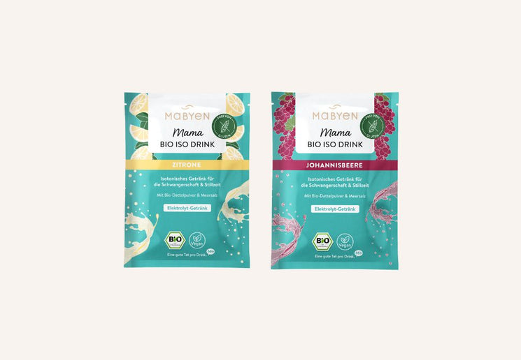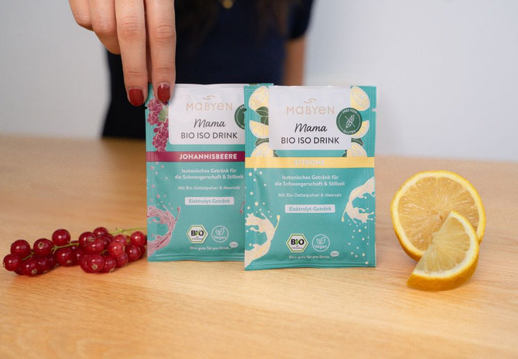 Der MABYEN Mama Bio Iso Drink ist ein isotonisches Elektrolyt-Getränkepulver, das dich in Schwangerschaft, Geburt, Wochenbett und Stillzeit zuverlässig unterstützt. Er hilft dir dabei, Flüssigkeit und wichtige natürliche Elektrolyte im Körper schnell auszugleichen - besonders in Momenten, in denen dein Körper viel leisten muss. Gemeinsam mit Hebammen entwickelt auf Basis der evidenzbasierten S3-Leitlinie „Vaginale Geburt am Termin“*, die isotonische Getränke während der Geburt empfiehlt, ist er speziell auf die Bedürfnisse von Mamas abgestimmt. Mit natürlichem Meersalz, Bio-Dattelpulver und dem fruchtigen Geschmack von Zitrone oder Johannisbeere ist er sanft, bekömmlich und lecker. Frei von Industriezucker, künstlichen Aromen, Farbstoffen und Koffein, dazu vegan, glutenfrei und in Bio-Qualität - so kannst du dich jederzeit sicher, gut versorgt und gestärkt fühlen.