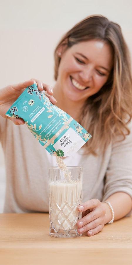 Unser Hafer Shake eignet sich besonders gut für Schwangere & Stillende, da er bewusst auf soja- und erbsenhaltige Proteine verzichtet. Die Basis von Mandeleiweiß haben wir speziell für unseren Hafer Shake gewählt, da sie unbedenklich für dich und dein Baby ist. Natürlich kannst du den Hafer Shake auch trinken, wenn du nicht schwanger bist oder stillst.